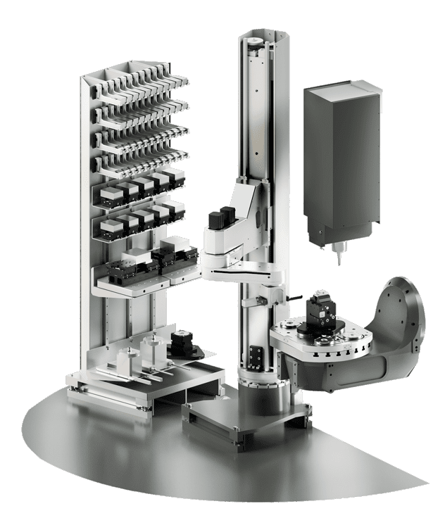 Herstellerunabhängig einsetzbar, intuitiv bedienbar und wirtschaftlich bereits bei kleinen Serien. Hauptzeitparalleles Rüsten durch drehbares Doppelrack sorgt für Non-Stop-Produktion.